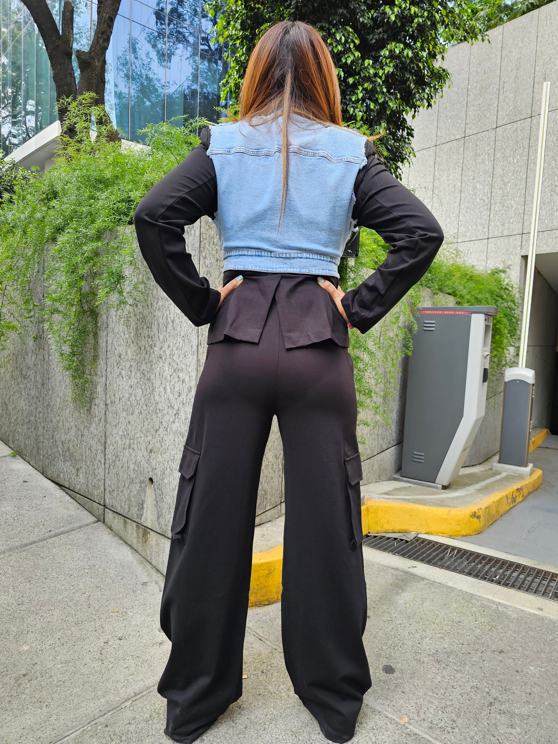 Set tipo pants cargo con mezclilla