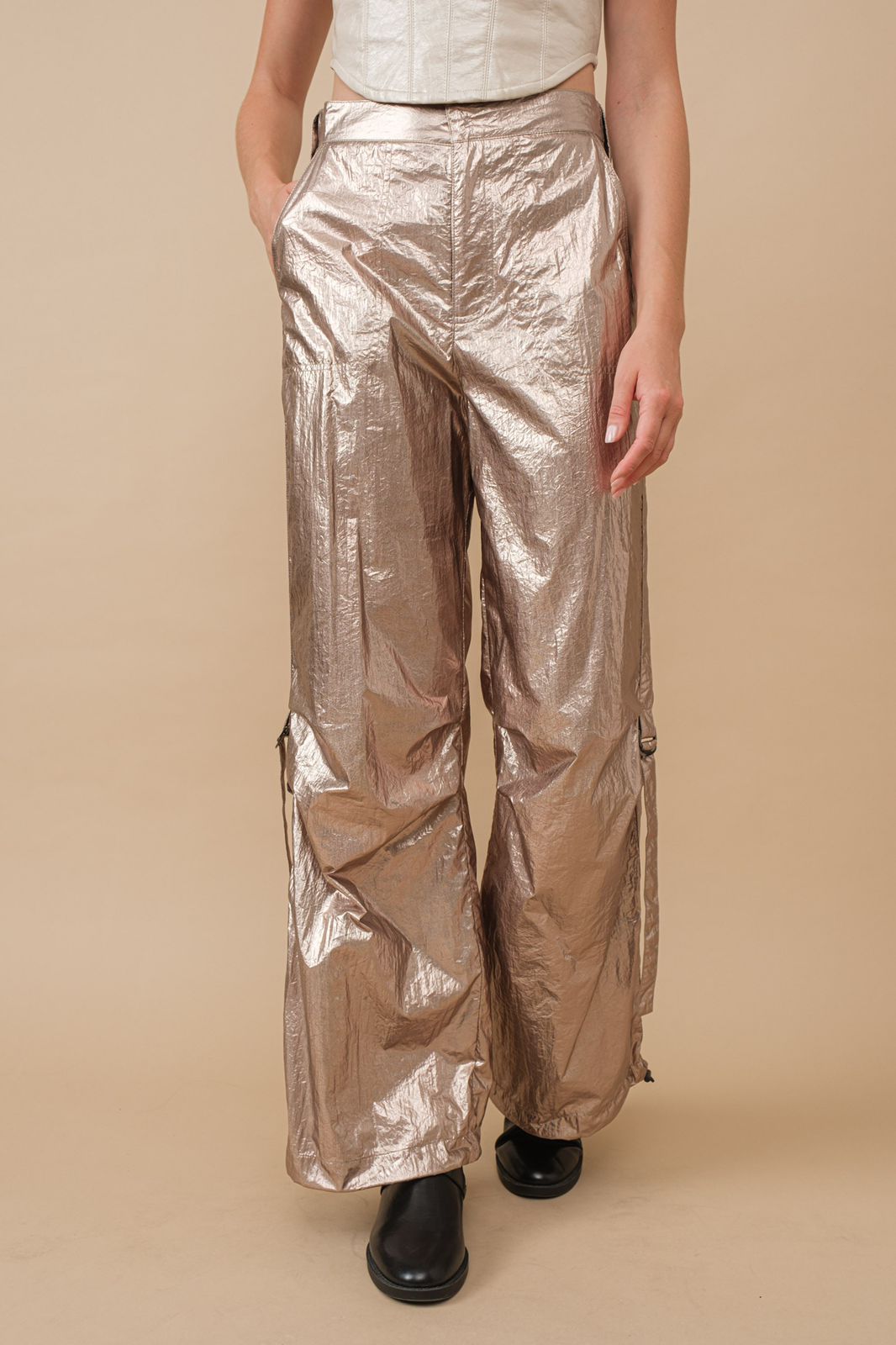 Pantalón metálico con amarre en costados