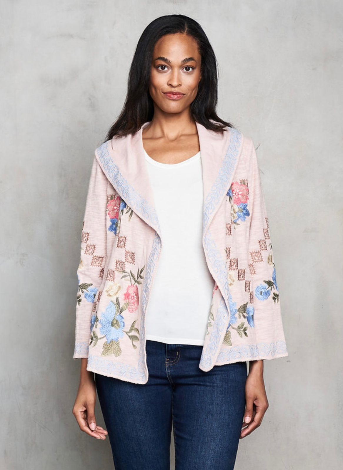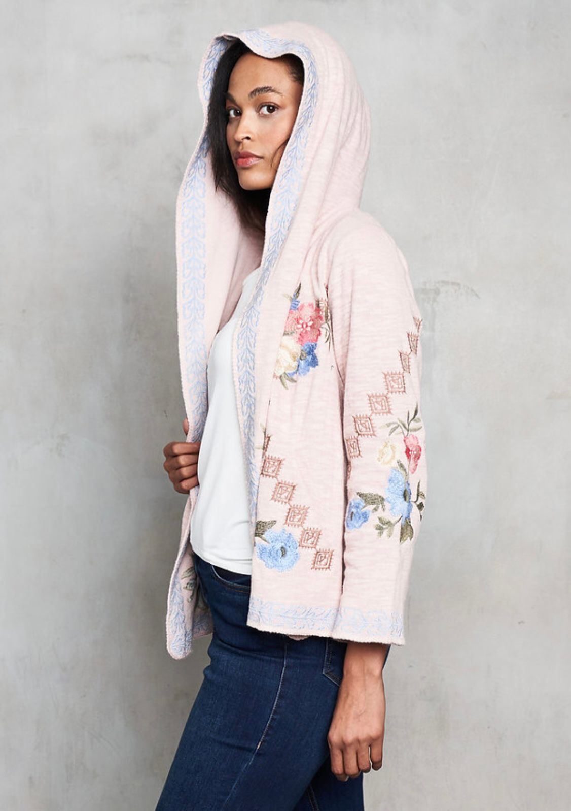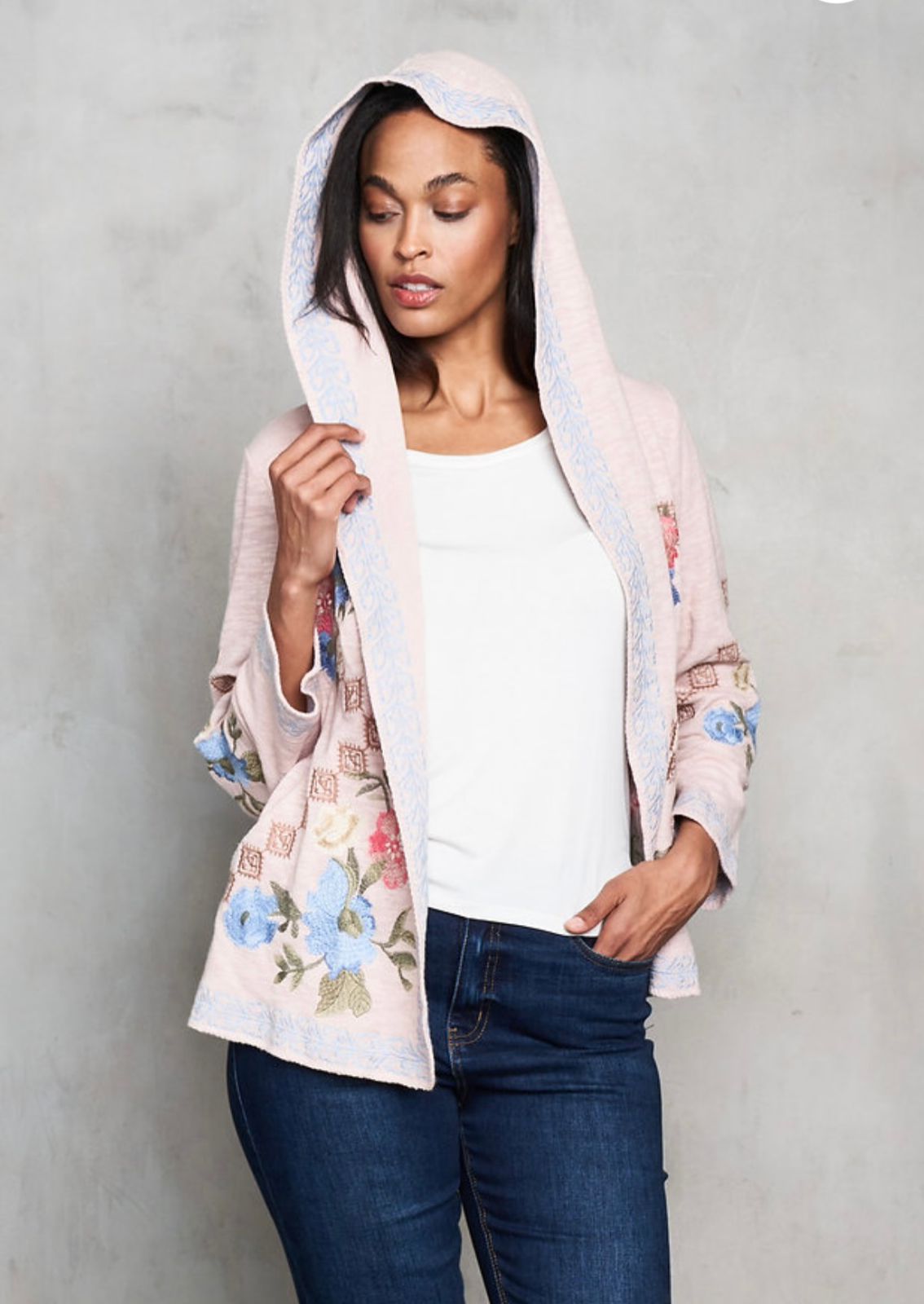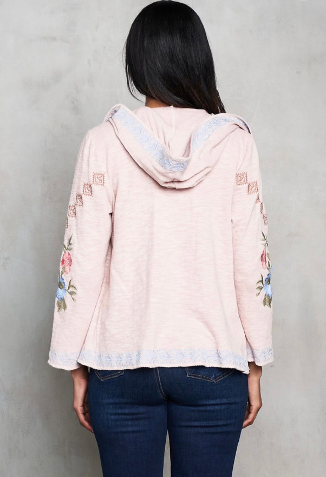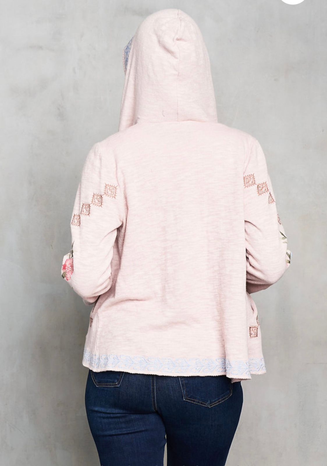 Suéter bordado en delantero y mangas con capucha 100% ALGODON